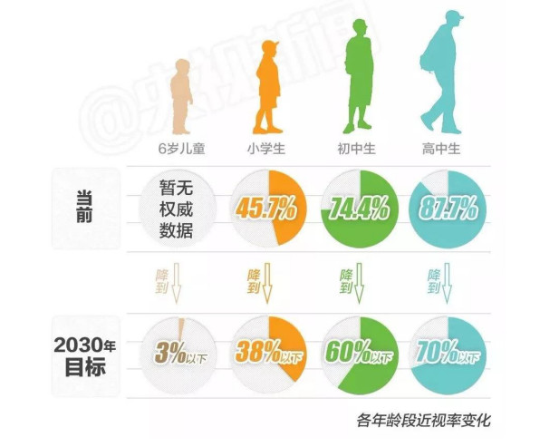 2015年發(fā)布的全國學(xué)生體質(zhì)與健康調(diào)研結(jié)果顯示,我國各階段學(xué)生近視率持續(xù)上升,7~12歲小學(xué)生近視率為45.7%、13~15歲初中生近視率為74.4%、16~18歲高中生近視率為87.7%。2018年世界衛(wèi)生組織調(diào)查研究報告稱,目前中國近視患者人數(shù)多達(dá)6億,幾乎是中國總?cè)丝跀?shù)量的一半。