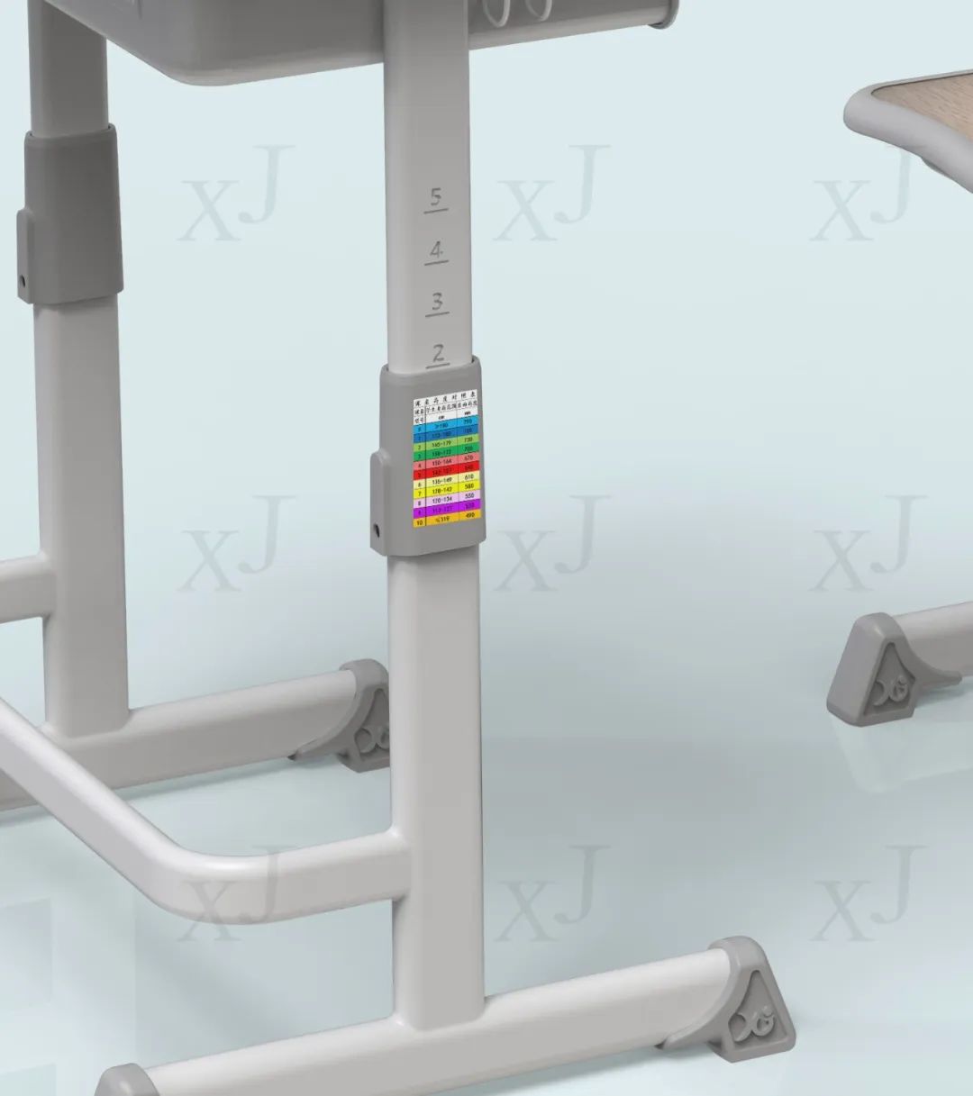 桌腿內(nèi)置隱藏式高度調(diào)節(jié)結(jié)構(gòu),650/675/700/725/750mm精密調(diào)節(jié),滿足不同年齡段中小學(xué)生的學(xué)習(xí)需求。