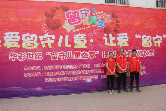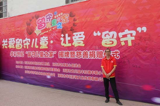 2018年5月31日,在第69屆兒童節(jié)來臨之際,深圳市名尊愛心促進(jìn)會會長、愛心企業(yè)家嚴(yán)雨麗女士、深圳市華圳影視傳媒有限公司董事長、資深媒體人張祖國先生、佛山市祥聚座椅制造有限公司研發(fā)設(shè)計(jì)總工程師段道朝先生和深圳市名尊愛心促進(jìn)會秘書長沈海國先生等一行60多人到河源市龍川縣豐稔鎮(zhèn)豐聯(lián)小學(xué)參加“華彩世紀(jì)留守兒童之家”揭牌暨慈善捐贈活動,為豐聯(lián)小學(xué)全體師生送上節(jié)日的祝福和問候。