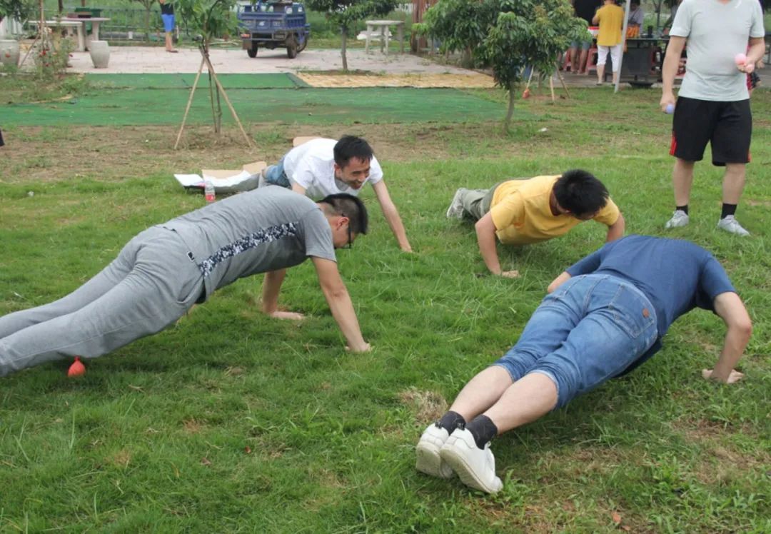 信任隊(duì)友,默契配合,克服困難,落后的隊(duì)伍要接受我們的俯臥撐小懲罰。