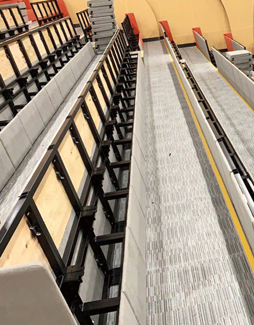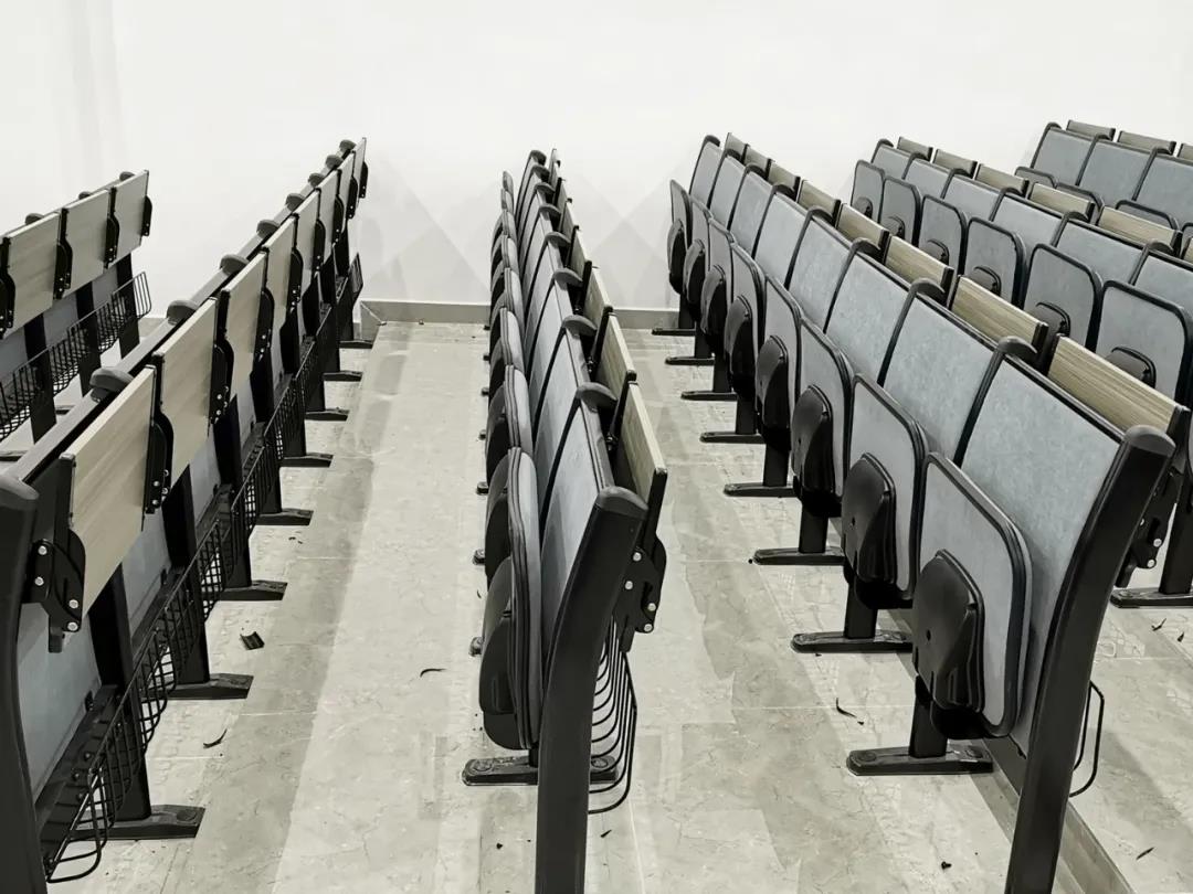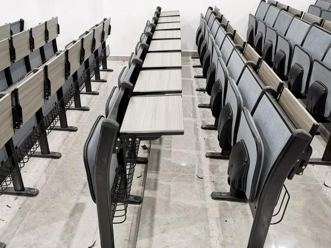 梯教室的聯(lián)排座椅座、背、板為雙面防火板材質(zhì),安全可靠,站腳采用優(yōu)質(zhì)鋁合金一體壓鑄成型,表面靜電粉末噴涂處理,防腐耐磨,承重力強(qiáng)。且桌面板可以收縮,增大過(guò)道面積,能夠滿足安全疏散使用需求。