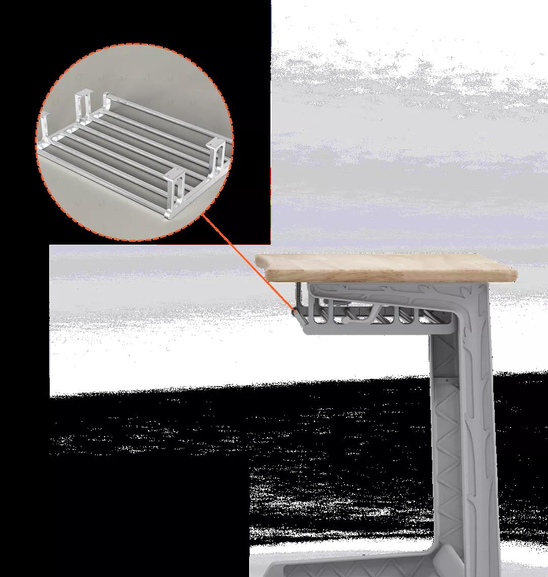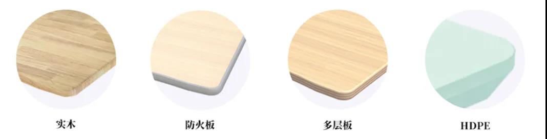 桌面板較常采用環(huán)保HDPE或?qū)嵞緸樵?,安全環(huán)保,經(jīng)中空吹塑工藝制作而成,桌面堅(jiān)固耐磨,圓弧轉(zhuǎn)角,整體美觀(guān)整潔。