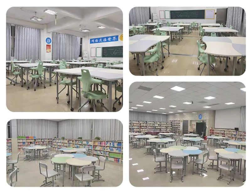 在授課時(shí),可以將課桌椅按常規(guī)課程排列,方便學(xué)生傾聽(tīng)教師的上課,與老師進(jìn)行語(yǔ)言和眼神的交流,而在需要進(jìn)行小組討論的場(chǎng)合,課桌椅又可以拼接,改變排列方式,小組成員可以面對(duì)面發(fā)表意見(jiàn)、交換思想,增進(jìn)團(tuán)隊(duì)討論合作活動(dòng),滿足了課程的需求,極大增強(qiáng)了教育的靈動(dòng)性。