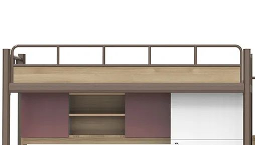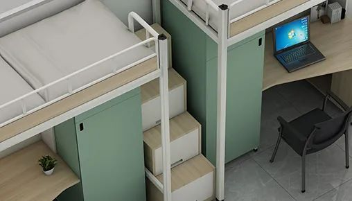 祥聚公寓床增加護(hù)欄高度、護(hù)欄底部擋板,既能保障睡眠者安全,又兼顧避免床上用品從旁掉落造成誤傷;增大走梯面積,并配備踏板防滑條紋,上下階梯更安全。
