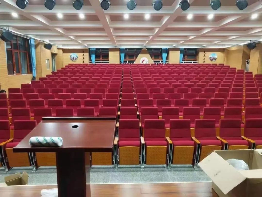 其次,科學(xué)合理的座椅布局不僅讓任何一個位置都能清楚看到舞臺,快速復(fù)位的座板和寫字板,能有效解決大量人員的進(jìn)出問題,滿足緊急疏散要求。
