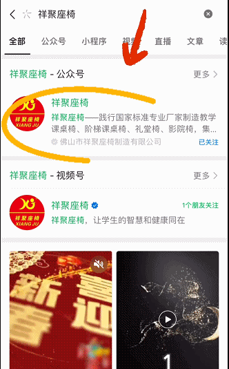 1、微信搜索【祥聚座椅】公眾號并關(guān)注