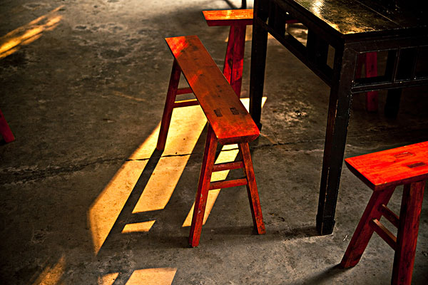 禮堂椅是木匠打造的大長椅。