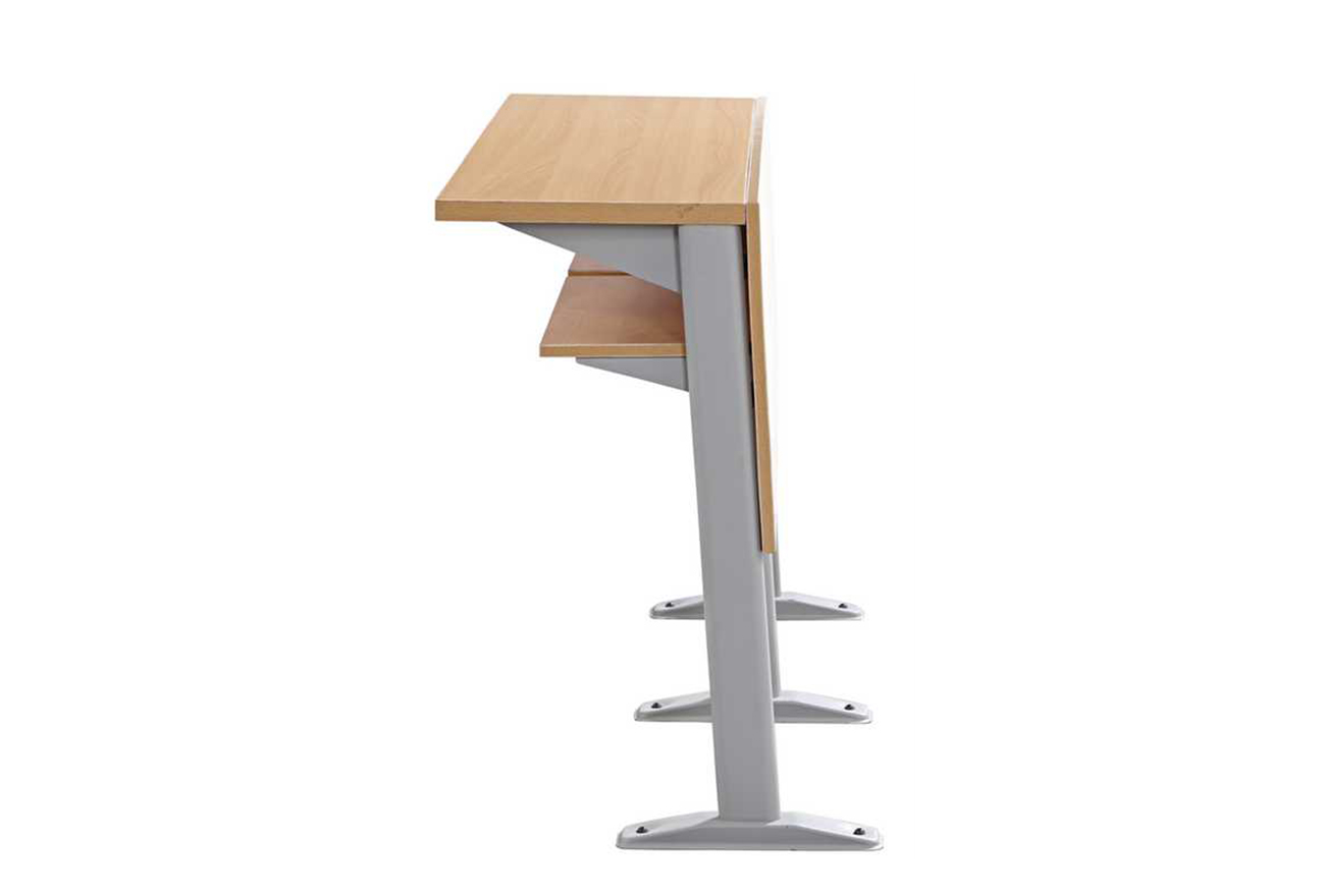2、寫(xiě)字板:板面采用優(yōu)質(zhì)三聚氰胺板、面粘防火板,支架采用鋼制鉸鏈活動(dòng)式寫(xiě)字板,牢固耐用,可承受150公斤重壓。