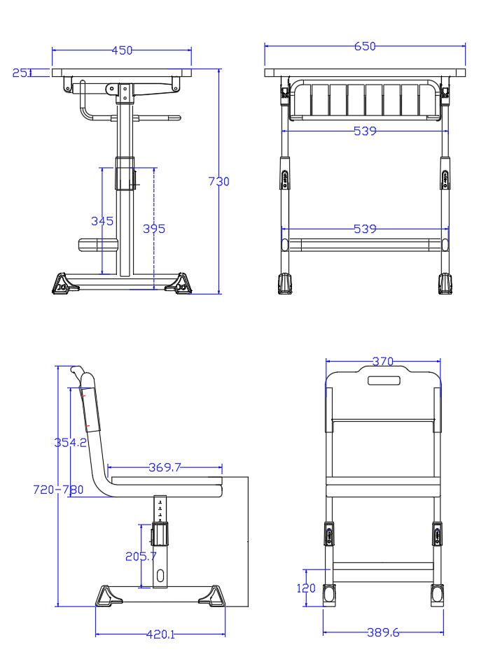 1.桌面:650*450mm板面采用優(yōu)質(zhì)三聚氰胺板、PVC封邊;