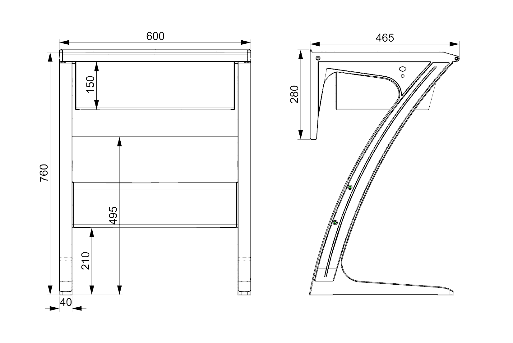 1.桌面及前擋板:桌面尺寸為650*470mm,采用優(yōu)質(zhì)多層板;