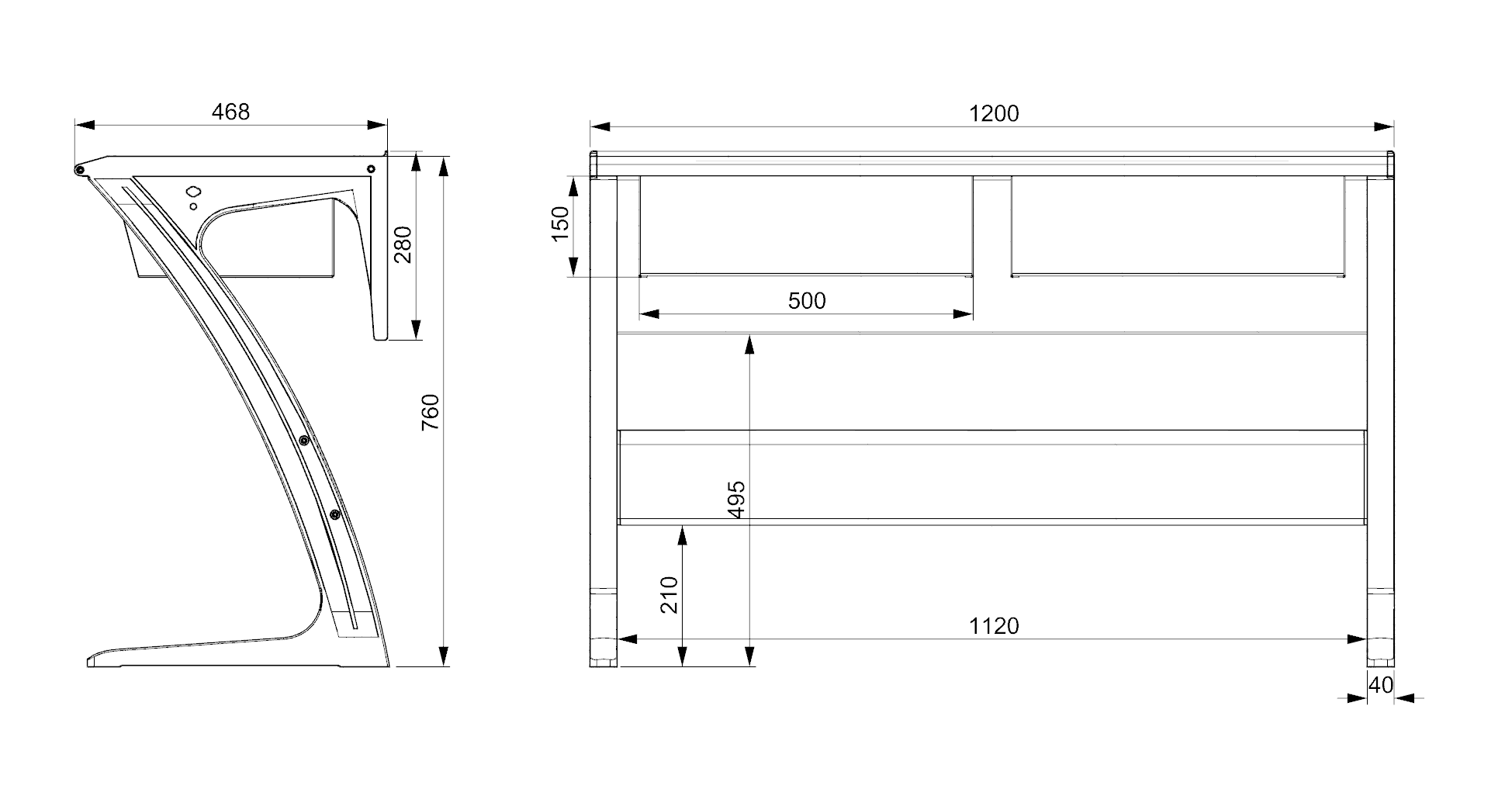 1.桌面及前擋板:桌面尺寸為1200*470mm,采用優(yōu)質(zhì)多層板;