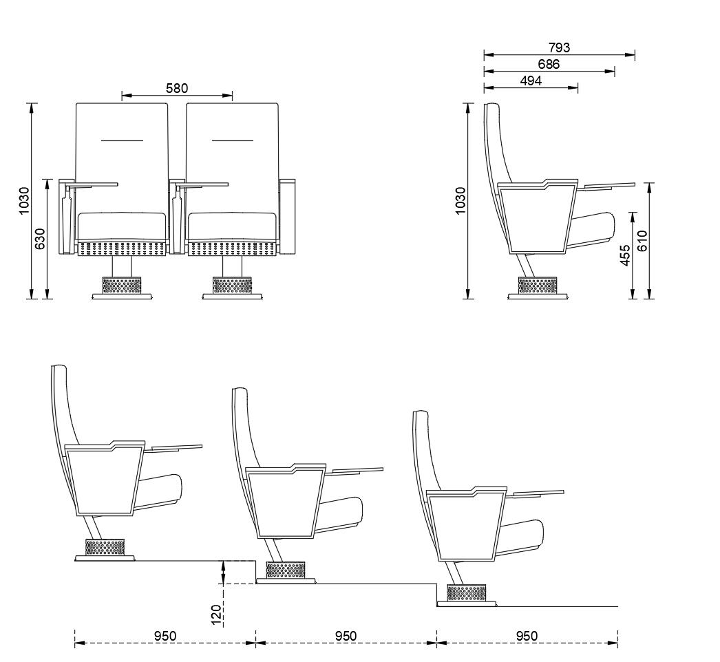 1.總高度960mm,連排座椅中心距離560mm--580mm,座椅總深度730mm,座面高度440mm;