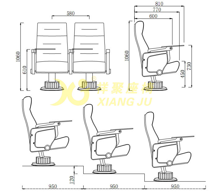 9、站腳:扶手框架采用優(yōu)質(zhì)木材訂制而成,下送風式腳筒采用優(yōu)質(zhì)鋼板經(jīng)模具沖壓(采用祥聚座椅專用獨特送風孔),具有良好自然送風效果及節(jié)能。